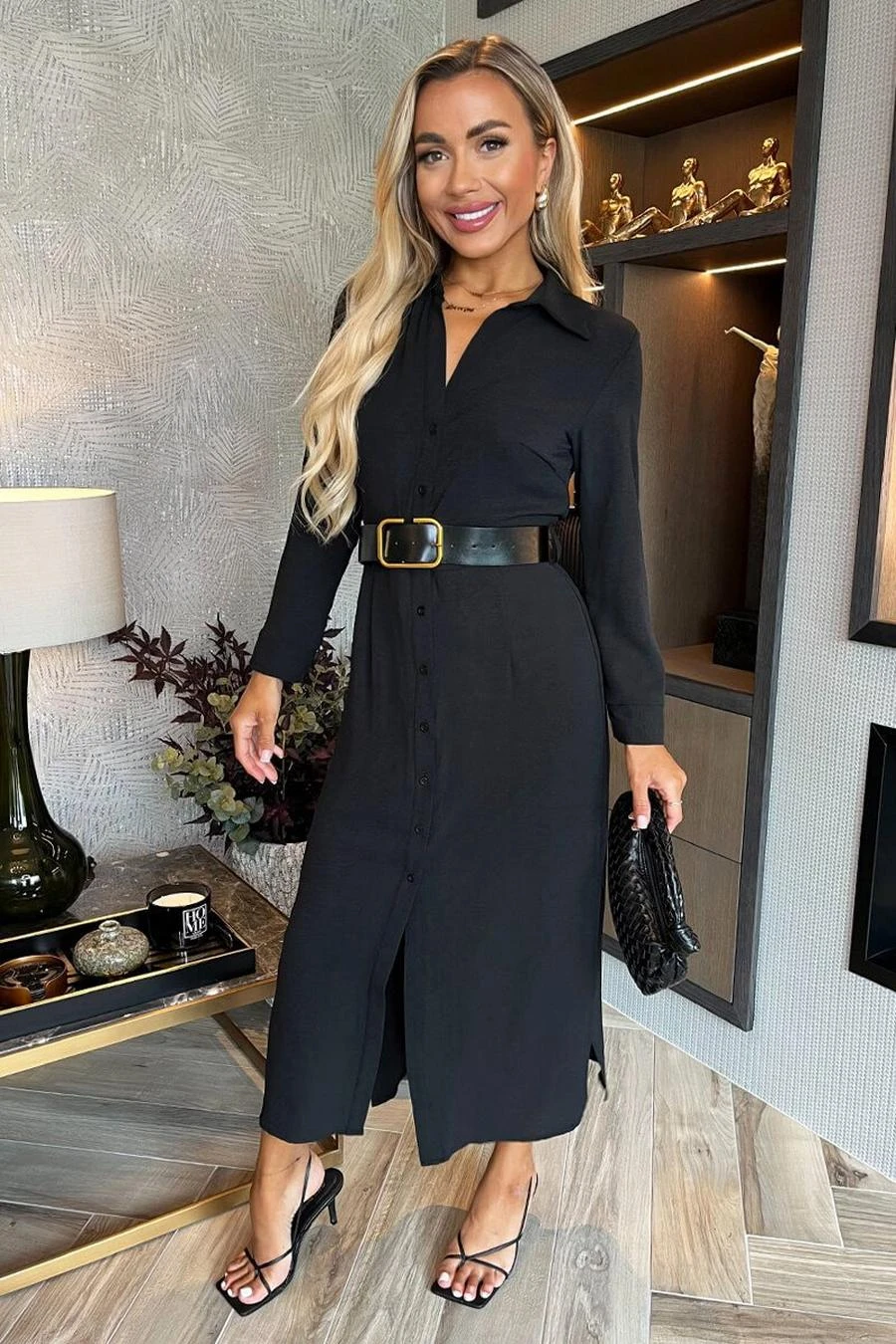 AX Paris Black Button Front Belted Shirt Midi Dress