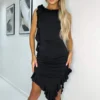 This Black Button Front Belted Shirt Midi Dress is an easy to style wardrobe staple. Featuring a classic collar, long cuffed sleeves, a button down front, a black waist belt and a midi skirt with side splits. Dress it down by pairing it with some boots or dress it up with your favourite heels and a matching bag. Model wears: UK 8/ EU 36/ US 4 Model’s height: 165cm/ 5’5″ Approx length from centre back to hem: 130 cm Fabric composition: 100% Polyester Colour: BLACK