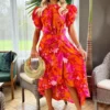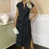 Our Black Round Neck Ribbed Top Tiered Skirt Midi Dress will be yournew summer go-to. Featuring a ribbed sleeveless top, a round neckline,a tiered smock-style midi skirt and a zip up back. Wear it with flatsfor a super cute day look, or dress it up with heels for the evening.Model wears: UK 8/ EU 36/ US 4Model’s height: 175cm/ 5’9″Approx length from side of neck to hem: 128cmFabric composition: 100% PolyesterColour: BLACK
