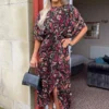 AX Paris Blue Marble Print Short Sleeve Belted Wrap Midi Dress