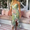 AX Paris Champagne Short Sleeve Tie Waist Plisse Midi Dress