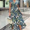 AX Paris Hot Pink Ruched Asymmetrical Frill Midi Dress With Flower Detail