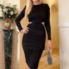 AX Paris Multi Zig Zag Printed Mesh Overlay Long Sleeve Bodycon Midi Dress