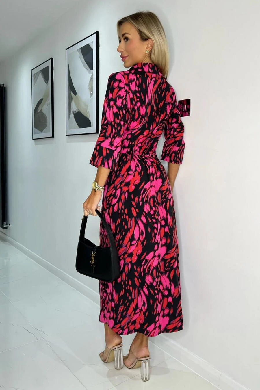 AX Paris Pink And Red Printed Shirt Midi Dress