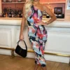 AX Paris Purple Tie Dye Print One Shoulder Knot Skirt Mesh Midi Dress
