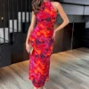 AX Paris Teal Sparkle One Shoulder Gathered Midi Dress