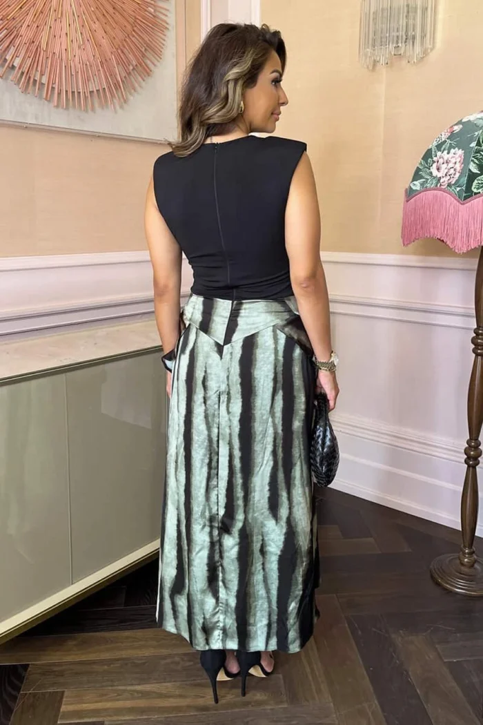 AX Paris Multi Smudged Stripe Print 2 In 1 Frill Split Midi Dress