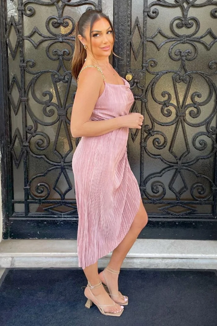 AX Paris Champagne Plisse Cowl Neck Gathered Midi Dress