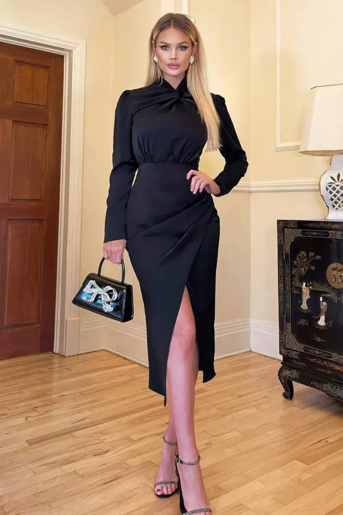 AX Paris Black High Knot Neck Wrap Midi Dress