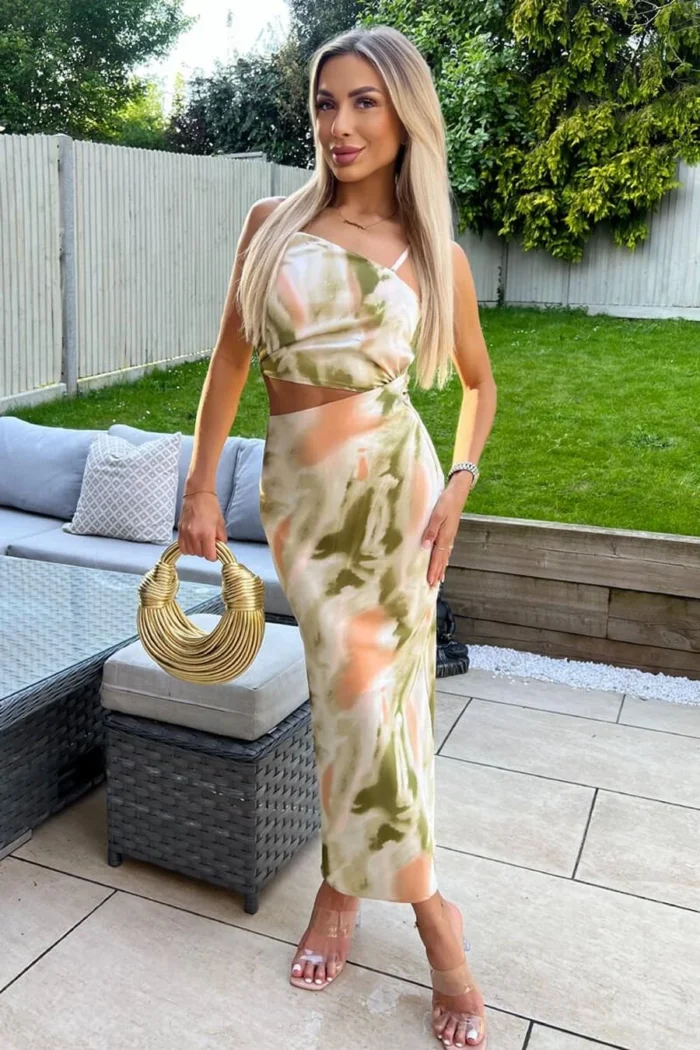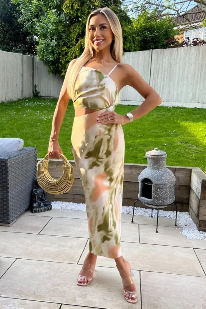 AX Paris Multi Marble Print Asymmetric Cut Out Midi Dress