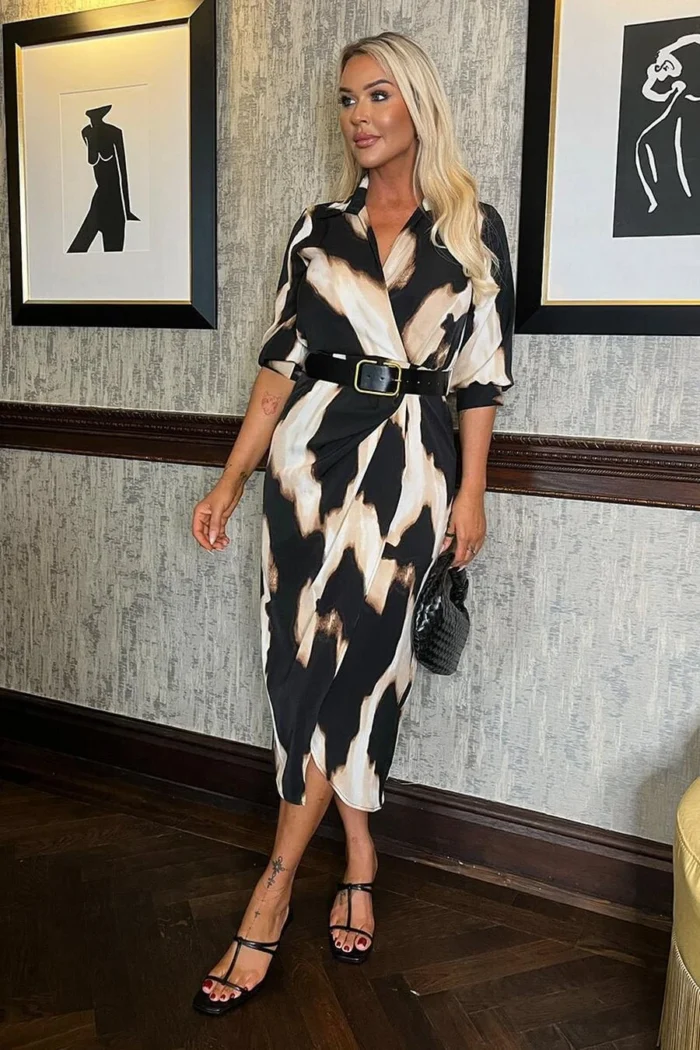 AX Paris Multi Marble Print Belted Wrap Collared Midi Dress