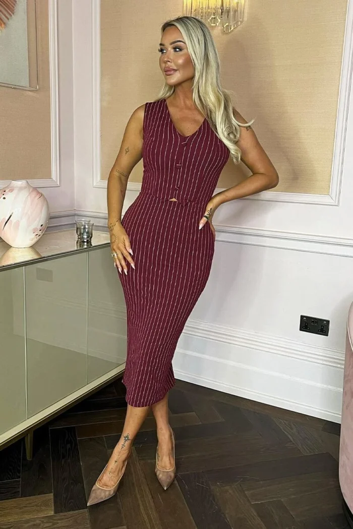 AX Paris Burgundy Pinstripe Waistcoat Detail Bodycon Midi Dress