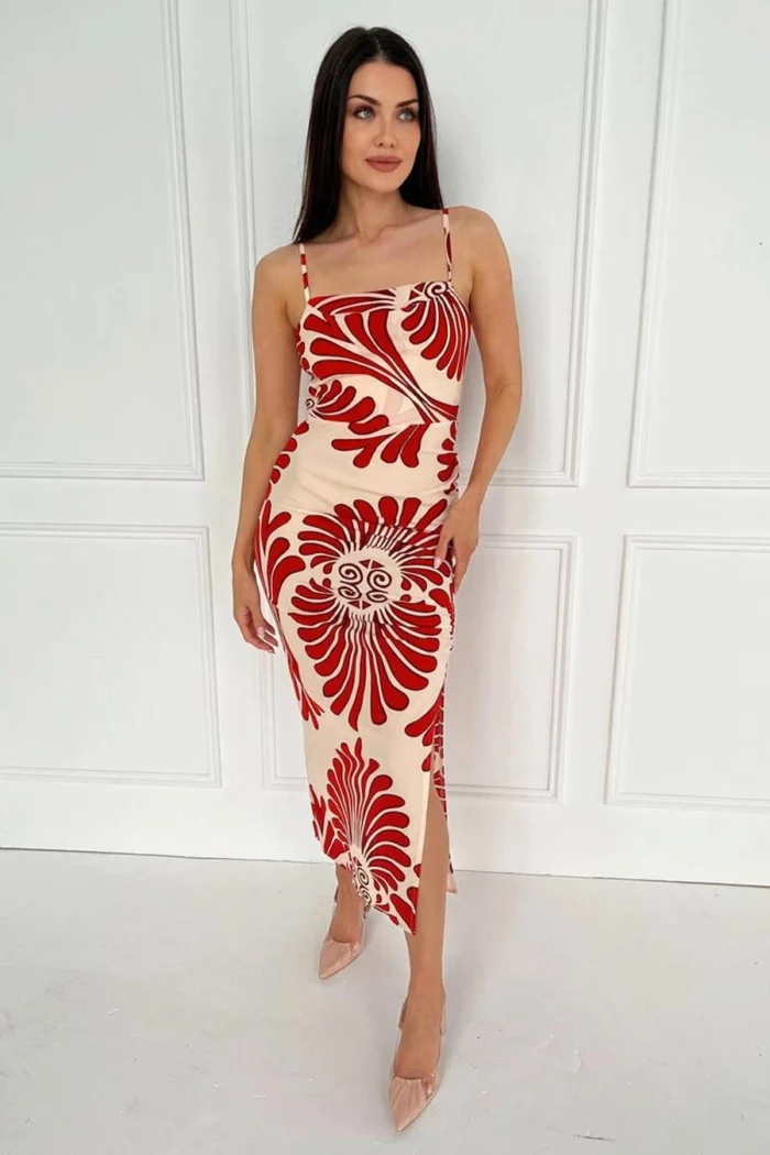 AX Paris Burnt Orange Abstract Print Cowl Neck Ruched Side Strappy Midi Dress