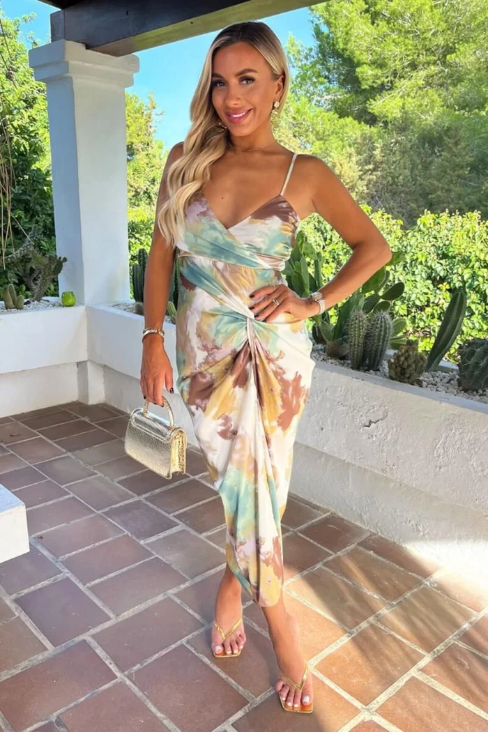AX Paris Multi Smudge Print Strappy Wrap Top Knot Skirt Midi Dress