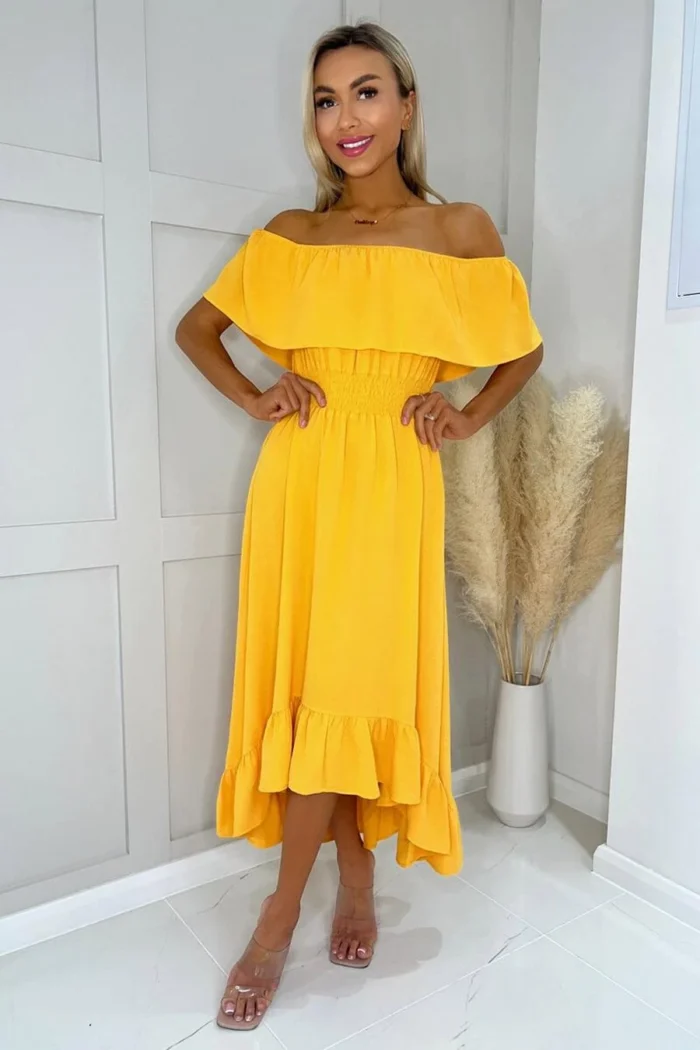 AX Paris Yellow Bardot Style Midi Dress
