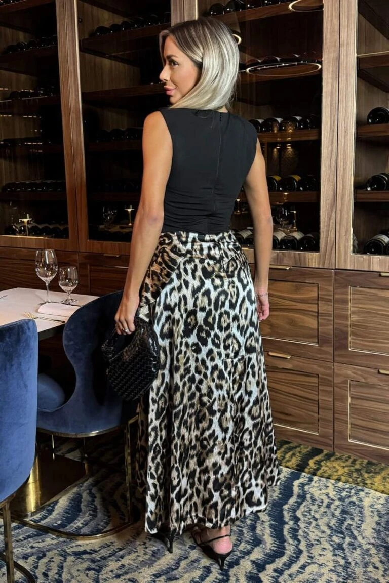 AX Paris Multi Leopard Print 2 In 1 Double Frill Split Midi Dress